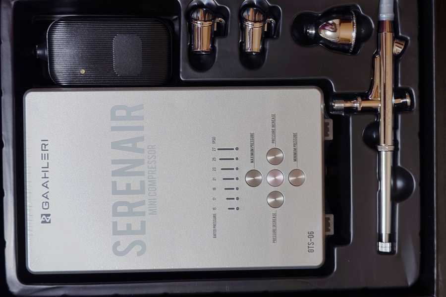 長年、エアブラシを買おう買おうと思いながら買えてなかったのと、ボーグマンのアニスを塗装した時に、さすがにラッカー系はしんどくなってきていて、水性塗料の方に切り替えようかなぁと思っている時にGaahleriさんのKareidoを見たのでいい機会だと思ってエアブラシの方を先に購入しました。