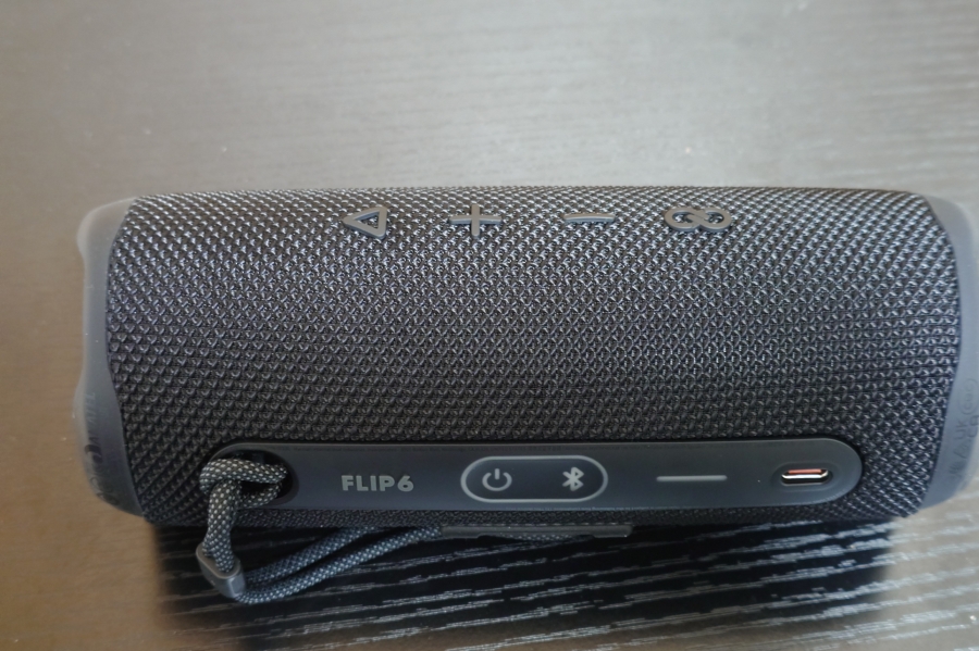 上部は音量の上げ下げと再生/停止、右端は複数台のFLIP6を繋いで共有するためのボタンらしいので、単体では使うことはなさそう。