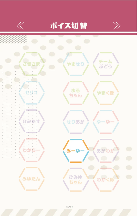それぞれタップするとボイスの確認ができるので、いちいちボイス切替をして確認しなくても大丈夫な感じにはなっています。