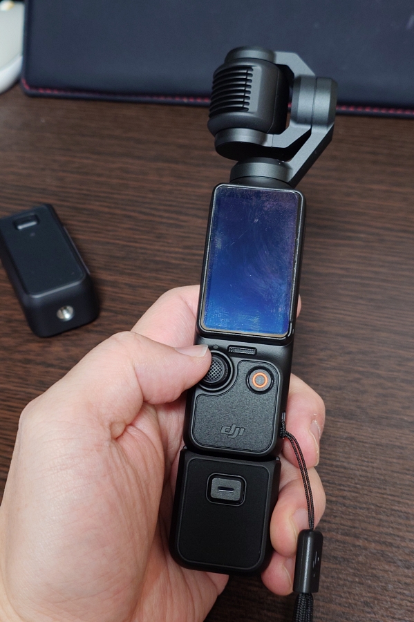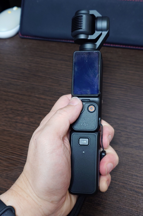 Osmo Pocket 3を実際に手に持ってみるとこんな感じになります。