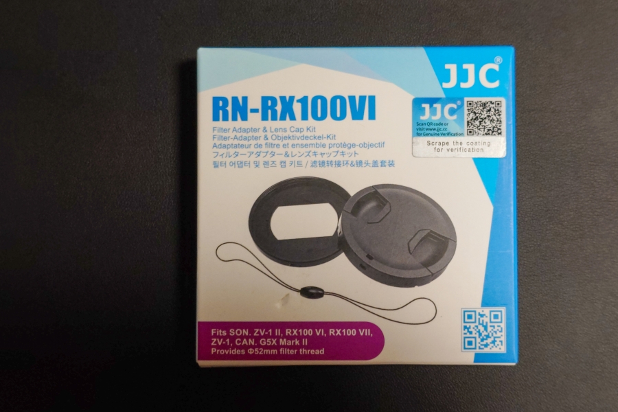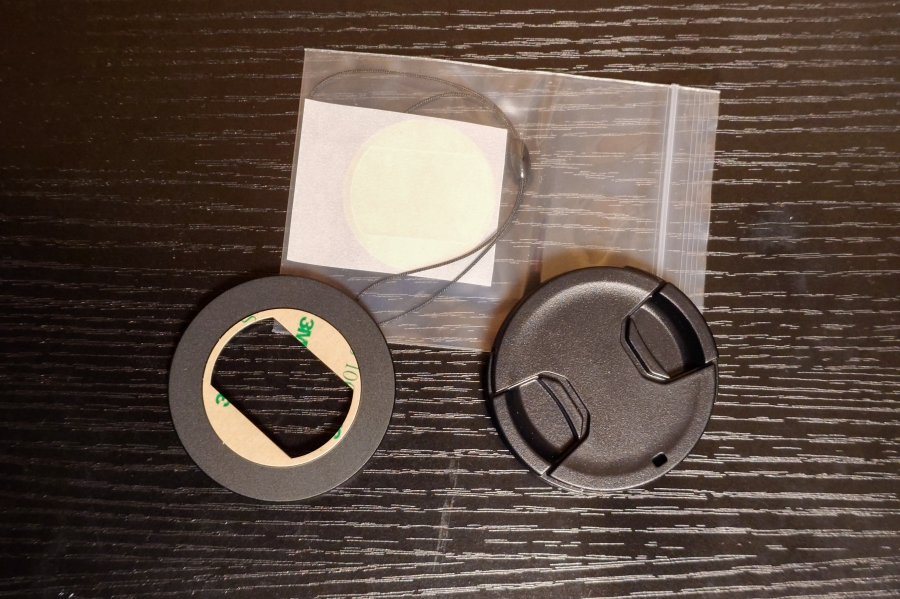 フィルターアダプター自体は金属製で、レンズキャップと予備の両面テープ、レンズキャップに付ける紛失防止のストラップがついています。